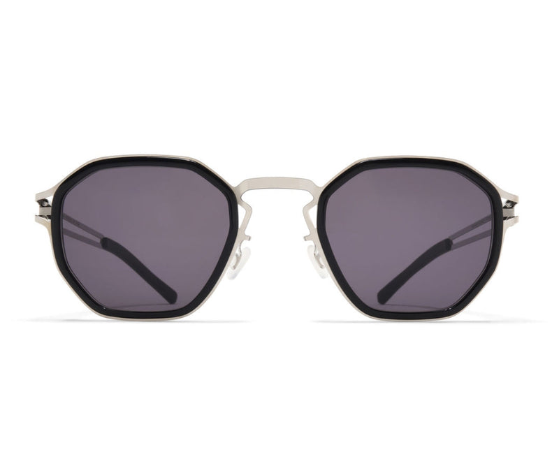 The Mykita Gia C797 sunglasses exude modern sophistication with a bold, angular design. Crafted from premium metal, the frame features a striking combination of shiny silver and black, offering a sleek and contemporary aesthetic. The solid grey lenses provide excellent UV protection, ensuring optimal eye comfort while enhancing the classic appeal of the design. With a lightweight yet durable construction, these sunglasses offer a comfortable fit for everyday wear. The sharp lines and refined detailing make the Gia C797 a statement piece, perfect for those who appreciate a blend of timeless elegance and modern craftsmanship in their eyewear.