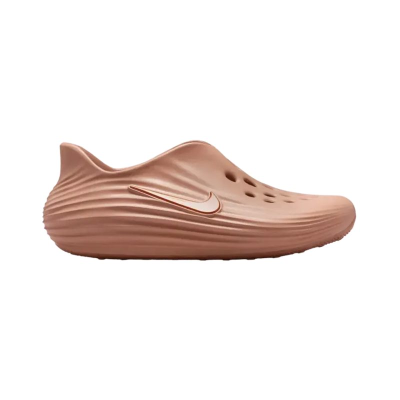 The Nike ReactX Rejuven8 'Rose Gold' is a sophisticated and highly comfortable sneaker, blending innovative cushioning with an elegant aesthetic. This model prominently features Nike's advanced ReactX foam in its midsole, engineered to deliver exceptional energy return and lasting comfort while also boasting a reduced carbon footprint compared to its predecessors. The 'Rose Gold' colorway offers a luxurious and contemporary look, showcasing subtle metallic pink and warm copper tones across the upper. This delicate yet striking hue is often complemented by neutral accents like off-white or light grey, enhancing the shoe's refined appeal and highlighting its modern design. The Rejuven8 silhouette itself, whether a new or reimagined design, emphasizes recovery and all-day wearability, making it ideal for post-workout comfort or elevated casual styling. Expect a breathable and adaptable upper, possibly constructed with lightweight mesh or supportive synthetics, designed to provide a secure yet flexible fit. The integration of ReactX foam ensures a springy, comfortable ride, making the 'Rose Gold' a compelling choice for those seeking a sneaker that combines cutting-edge performance with an undeniably chic and versatile style.