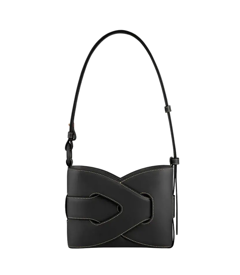 Composed of two matching and intertwined leather modules, the “Nodde” model is a bag with interlaced lines, highlighted by meticulous stitching and perfect symmetry.