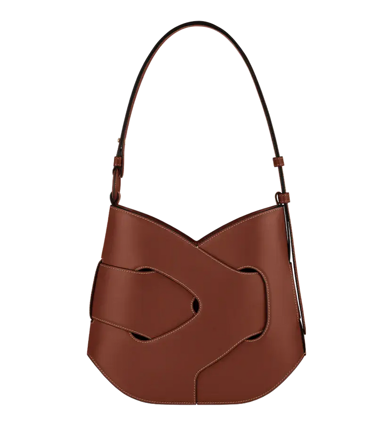 The “Nodde Hobo,” whose name echoes the French word for “knot,” is made up of two perfectly symmetrical, intertwined leather modules. Its beveled design accentuates its dynamic design and its base, set into the main body of the bag using a distinctive assembly technique.