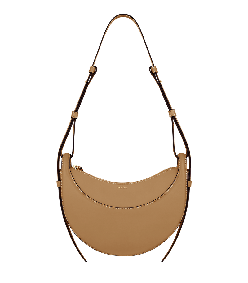 Sourced from certified tanneries in Europe, Polène leather requires little maintenance. To prolong its life, avoid prolonged exposure to light and heat, and keep away from water, greasy substances, perfumes, and cosmetic products. Take care with dark or new clothes, as the dye may bleed. If the bag gets wet, dab it gently with a soft cloth and allow it to air dry. You do not need to apply any cream. Do not overfill the bag. Store it in its dust bag.