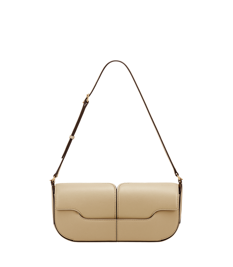 Adjustable shoulder strap that can be worn short on the shoulder, featuring an engraved Polène buckle