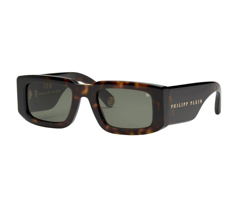 Philipp Plein sunglasses model SPP149V 0722 embody classic elegance with a bold edge. Featuring a refined rectangular shape and a rich Havana brown acetate frame, these sunglasses offer a timeless look with modern appeal. The solid green lenses provide reliable UV protection while adding a subtle contrast to the warm-toned frame. Designed for those who appreciate luxury and confident styling, this model combines comfort, durability, and fashion-forward design. Signature Philipp Plein details enhance the premium finish, making it a standout accessory for everyday sophistication. Perfect for both casual and upscale settings, these sunglasses are a versatile expression of style and individuality.