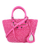 Elevate your style with the Balenciaga Le Cagole small panier handbag. Crafted from nylon raffia and leather, this bag features double hand-braided handles, a removable shoulder strap, and aged-silver hardware. The decorative front zipped pocket and removable heart mirror add a touch of elegance. Dimensions: H19cm x W25cm x D12cm.