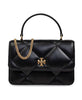 Elevate your style with the Tory Burch Quilted Double T Motif Shoulder Bag, crafted from luxurious calfskin. This chic handbag features a quilted design with the iconic Double T motif and gold-tone details, perfect for adding a touch of elegance to any outfit. Key attributes: Black | 100% Calfskin | Removable chain shoulder strap | Internal card slots | Quilted design | Flap top with magnetic closure | Dimensions & fit: Depth 5.5 cm | Handle 7.5 cm | Shoulder strap 57 cm | Width 17.5 cm | Height 11.5 cm | Composition & care: 100% Calfskin