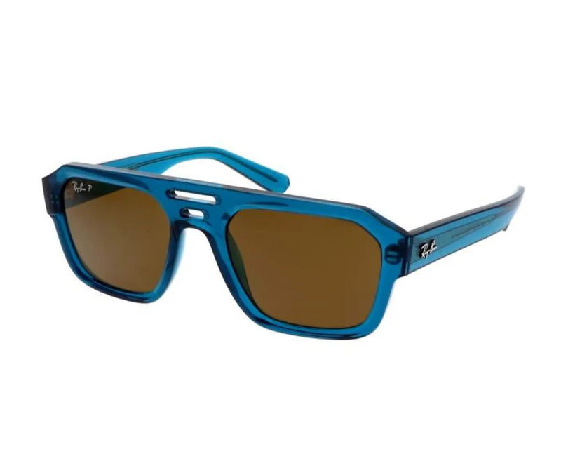 Introducing the Ray-Ban 4397 6683/83 sunglasses, a unisex accessory designed for those who value both style and functionality. These sunglasses feature a sleek rectangle shape with a transparent light blue frame, offering a contemporary and fresh look. The dark brown polarized lenses ensure 100% UV protection, reducing glare and enhancing visual clarity for your outdoor adventures. Perfectly blending modern design with timeless appeal, these Ray-Ban sunglasses are a versatile addition to any wardrobe, providing comfort and durability for everyday wear. Elevate your eyewear game with these standout shades, suitable for any occasion.
