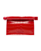Elevate your style with this Jacquemus La Petite Pochette Rond Carré cross body bag in red shiny embossed crocodile leather. Perfect for the modern woman on-the-go. Dimensions: Height 12.5 cm, Length 19.4 cm, Width 6.6 cm. Fabric: Cotton/Calf Leather.