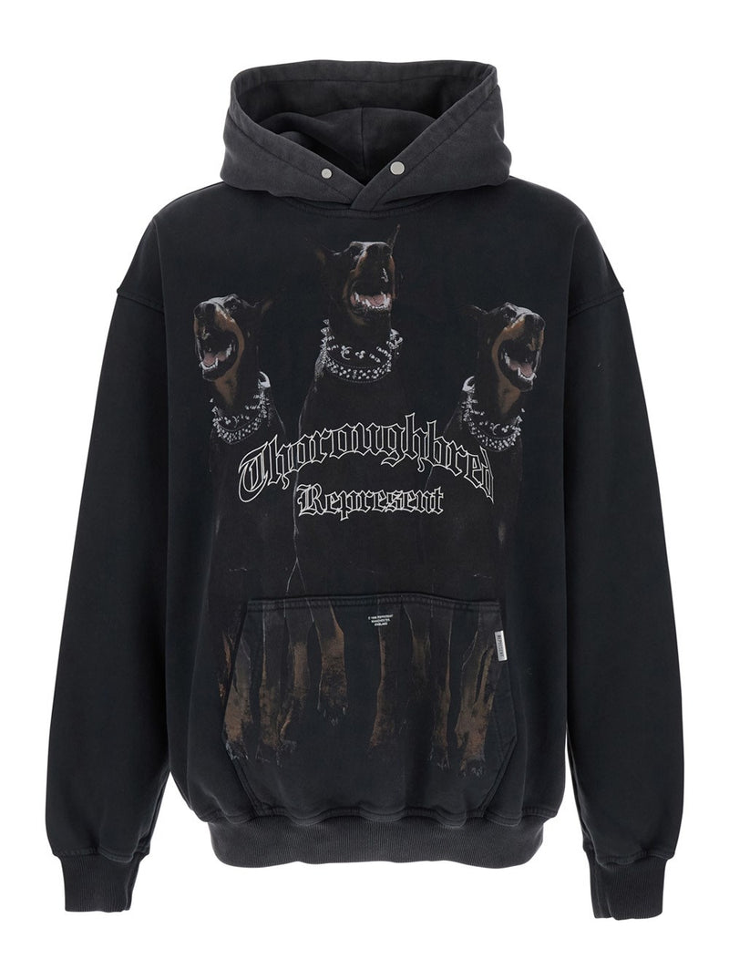 Represent Black Hoodie with Fixed Hood and Maxi Print on the Front in Cotton Man