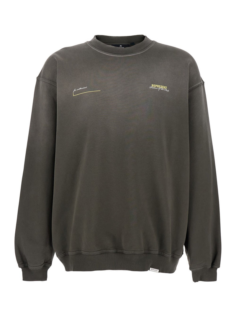 Represent 'Patron of The Club' Olive Green Crewneck Sweater with Front and Back Logo Print in Cotton Man