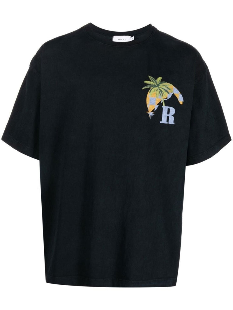 Rhude Moonlight Tropics Logo Print T-Shirt in Black