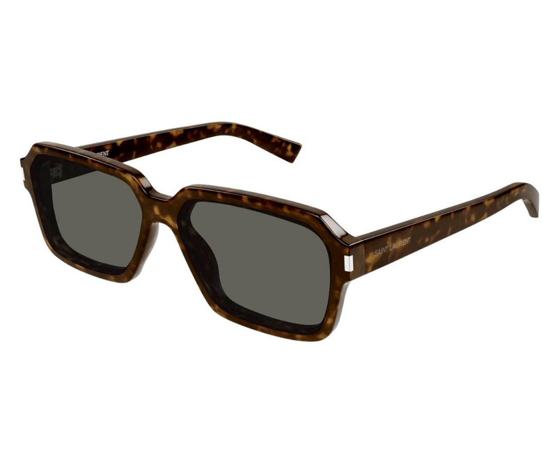 An original squared shape distinguished by saint laurent iconic corner angle and lens aligned to the acetate front. The style is available in the classic saint laurent color palette. The logo saint laurent is laser engraved on both temples