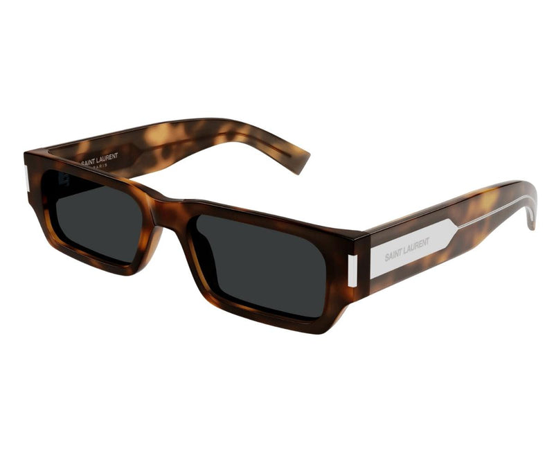 A narrow recatangle and sharp shape in the iconic key concept of the season, naked wirecore, to create a strong saint laurent statement. The style is enriched by the biggest corner angle ever, 1 cm,paired with the metal wirecore dimension. The bold acetate temple is made in a new innovative material that allows to have the visibile wirecore with lasered saint laurent logo in super shint finishing.The color palette includes iconic color combinations with crystals on temple and transpsarent seasonal colors.