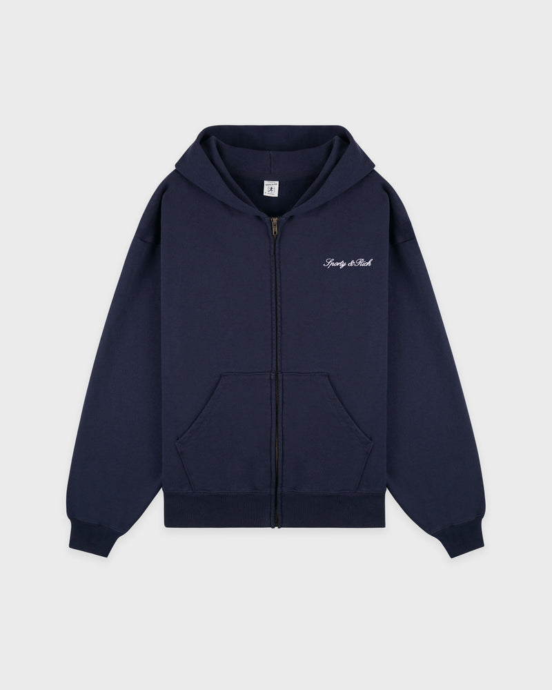 Signature Logo Embroidered Zip Hoodie - Navy/White