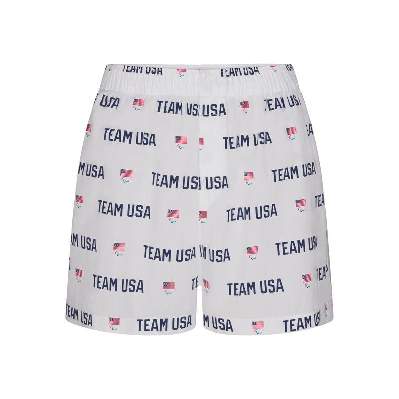 SKIMS FOR TEAM USA COTTON POPLIN SLEEP PARALYMPIC BOXER | WHITE