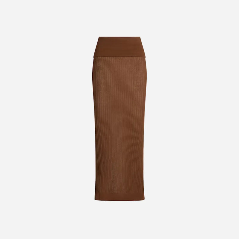 SKIMS Sheer Knit Foldover Long Skirt Bison