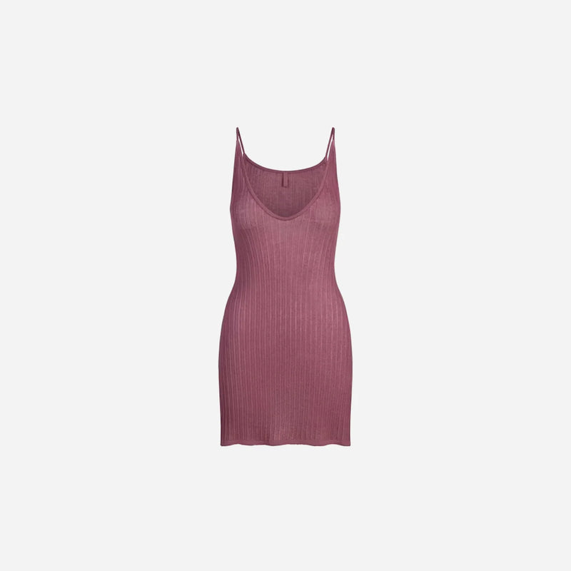 SKIMS Sheer Knit Mini Plunge Dress Beet