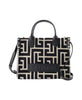 Elevate your style with this luxurious Balmain tote bag designed for the modern woman. Crafted with jacquard and calfskin, this bag features two handles and a shoulder strap for versatile carrying options. The interior is lined with leather and includes two compartments and two zipped pockets, perfect for keeping your essentials organized. With a front pocket closure, this bag is both stylish and functional. Dimensions: Width 10cm, Height 20cm, Length 26cm.