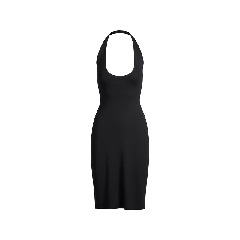 From brunch to date night, this midi is a must. Designed in our smooth and slinky modal, this plunge halter midi dress features a sexy low back and curve-hugging fit. Features an interior shelf bra for support. Hits below the knee and fits true to size.