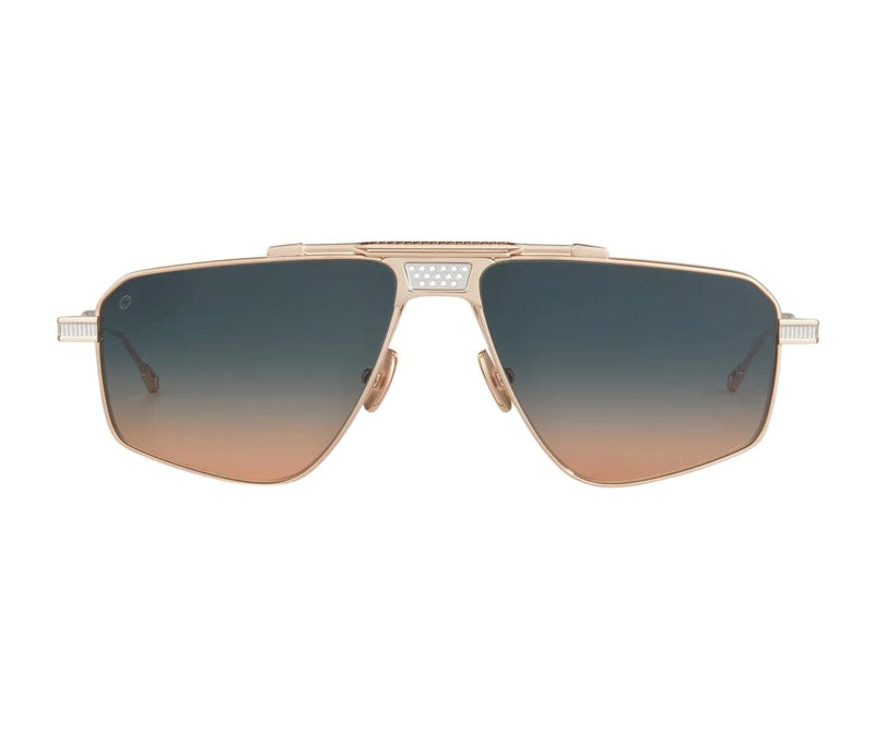Titanium Construction featuring integrated aerodynamic technology with state of the art lines. Accented with Titanium two-tone grilles and fender vector fins outfitted on the mid beta flex temples. Modular Monoblock Connections finished in two-tone and ordained with our signature details and hidden rim lock. Custom 4mm Polished and Tumbled Rimstock. Hybrid System for Brow Bridge integration and signature bridge carving detail revealing wind channels. Temple tips with iconic star lug nuts decorated in two tone details are finished at the end. Ergonomically designed to fit most face shapes.