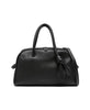 Elevate your style with this black Jacquemus 'The Small Turismo' handbag crafted from grained calfskin. Featuring a chic bowling bag shape, two top handles, a two-way zip closure, detachable and adjustable shoulder strap, and a charming bow detail. Complete with an internal pocket. Dimensions: 26 cm x 16 cm x 11 cm. Made of 100% calfskin.