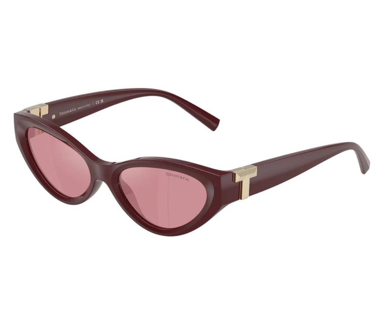 The TIFFANY & CO. 4225U 8389/30 sunglasses combine bold elegance with modern glamour. Designed in a chic cat-eye shape, these sunglasses feature a luxurious burgundy acetate frame that adds a sophisticated touch to any look. The pink lenses with a silver mirror finish create a striking contrast, offering a trendy and eye-catching appeal. Crafted for both style and function, these sunglasses provide essential UV protection while ensuring all-day comfort. Perfect for those who love to make a fashion statement, the TIFFANY & CO. 4225U 8389/30 sunglasses are a stylish addition to any accessory collection, seamlessly blending classic charm with contemporary flair.