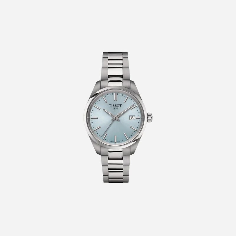Tissot PR 100 Quartz Ice Blue Dial 34mm Grey Stainless Steel Bracelet Watch