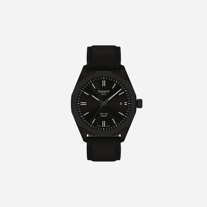 Tissot PRC 100 Solar Quartz Black Dial Black Leather Strap Watch 39mm
