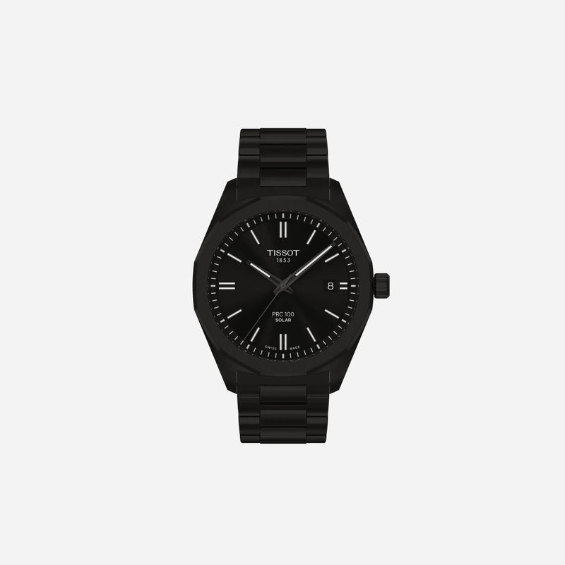 Tissot PRC 100 Solar Quartz Black Dial Black Stainless Steel Watch 39mm