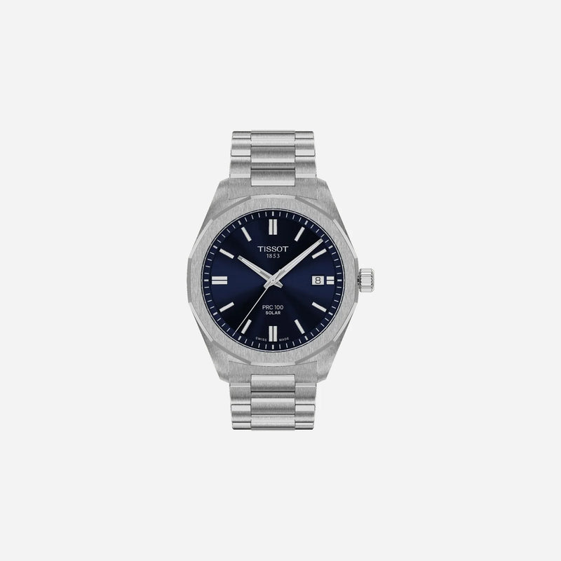 Tissot PRC 100 Solar Quartz Blue Dial Grey Stainless Steel Watch 39mm