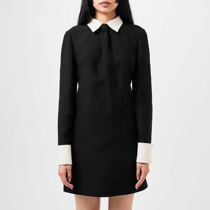 Stride confidently in Valentino's Crepe Couture Mini Dress, a brand renowned for its romantic glamour and timeless elegance. Meticulously crafted in classic hues adding to the piece's versatility, ensuring ease of styling. From sophisticated events to upscale occasions, this dress is the perfect piece, exuding structure and a beautiful drape.