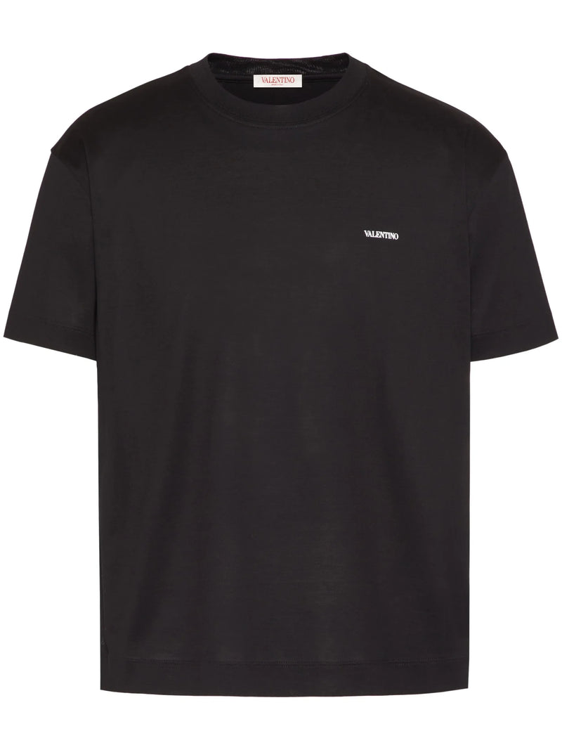This black Valentino Logo T-Shirt is made of comfortable cotton and features a distinct logo print at the chest. Its crew neck, short sleeves, and straight hem provide a classic and versatile look. Perfect for any casual occasion, this shirt is a must-have addition to your wardrobe.