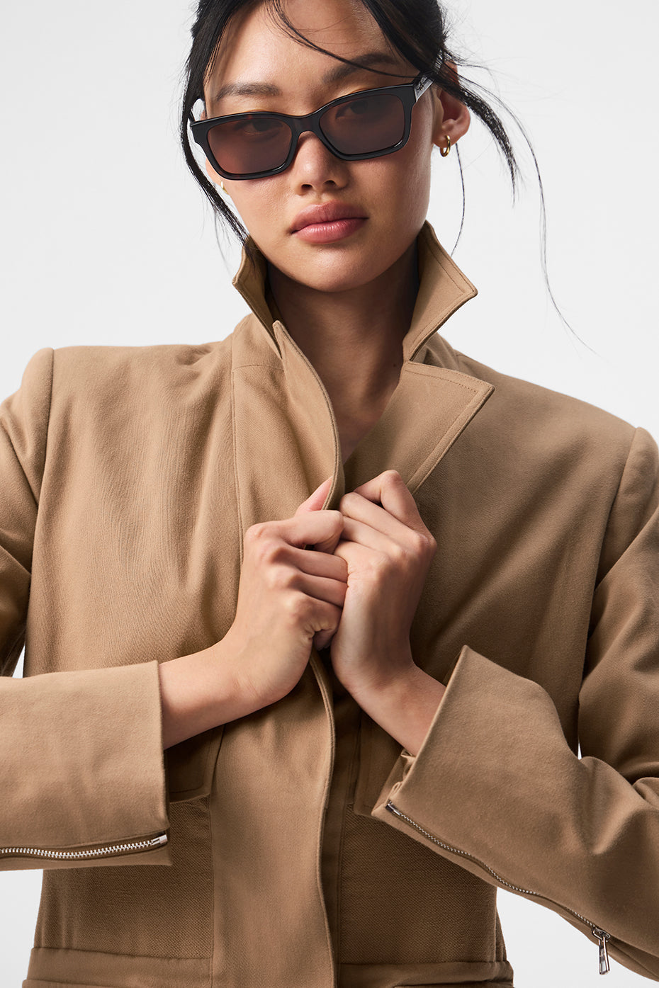 Classic with a cool twist, the Formation is the trench you’ve been searching for. The main silhouette is standard, with notched lapels, storm flaps, flap pockets and a softly structured, slightly stretchy cotton-blend fabric. But the best part? The flattering, contrasting waist panel that highlights the figure and makes this trench feel totally fresh. Leave the front zipper undone for a more laid-back vibe (with a workout set), or zip it up for a more tailored look that works from day to night.