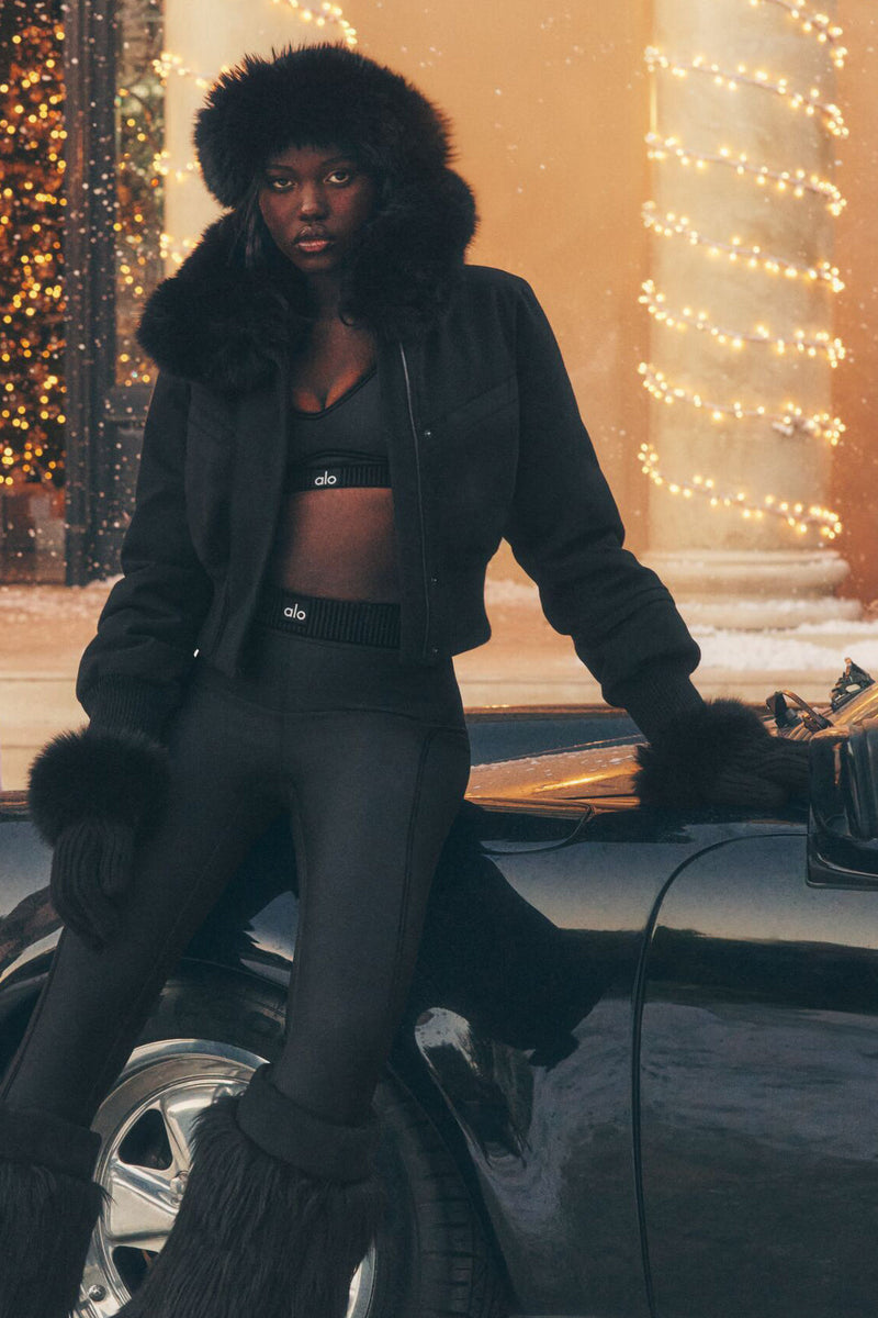 A jacket defined by structure and softness. The Wool Blend Bunny Slope Jacket has a sculpted body that creates clean, architectural lines, while the oversized faux fur collar adds a dramatic, cloud-like volume. Ribbed knit panels at the cuffs and waistband ground the silhouette, offering a tailored counterpart to the plush texture above. It’s winter dressing with a refined twist.