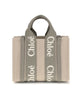 Chloé Woody Handbag pairs a linen body with contrasting leather details for an elegant, versatile everyday tote. It offers top-handle carrying plus a removable, adjustable shoulder strap for hands-free wear. Key attributes: Multicolor | Linen | Concealed button top closure | Double flat top handles | Removable and adjustable leather shoulder strap | Interior welt pocket | Contrasting leather trim | Extension on leather side panels | Iconic signature on side panels | Clean, structured silhouette | Dimensions & fit: 26.5×26.5×8 | Composition & care: 100% Linen | Leather details | Lining: 100% Polyester